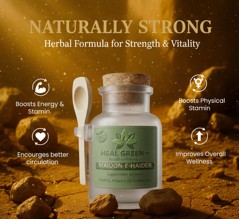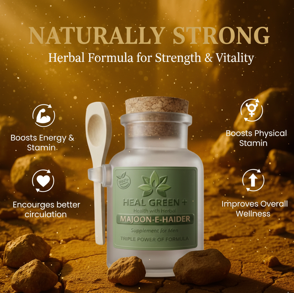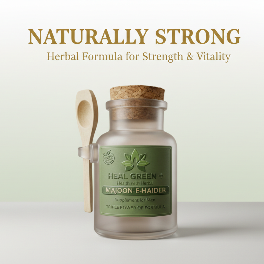 Majoon-e-Haider by Heal Green+ is thoughtfully prepared using carefully selected herbal ingredients to support men’s daily strength, stamina, and overall vitality.Inspired by traditional wellness practices and adapted for today’s lifestyle, it helps men feel more balanced, energetic, and confident — naturally.